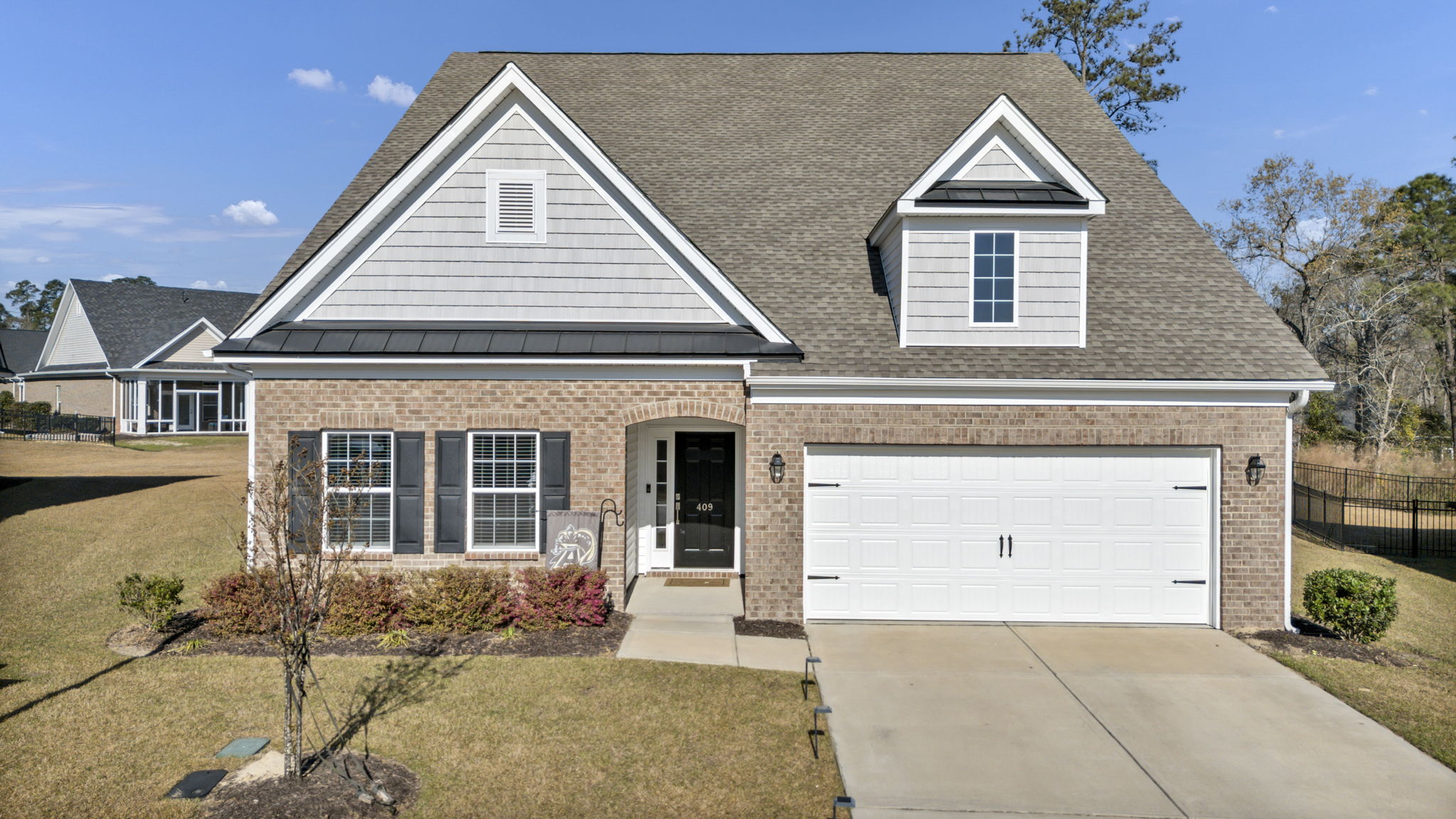 Welcome to 409 Layup Circle, tucked inside the gated Northwoods Villas section of Woodcreek Farms, where easy living meets everyday luxury. From the moment you step through the door, you’re greeted by a wide, welcoming foyer and beautiful LVP flooring that flows effortlessly into the heart of the home. Just off the entry, a formal dining room with elegant panel molding sets the stage for memorable dinners, but it’s versatile enough to become your favorite game room, library, or additional lounge space. The home truly opens up as you move into the spacious kitchen and living area, designed with entertaining in mind. Picture gathering around the massive center island, surrounded by quartz countertops and a glazed tile backsplash, while conversations carry easily into the inviting living room anchored by a cozy gas log fireplace. When it’s time to unwind, the primary suite offers a private retreat with a spacious sitting area and direct access to your screened-in porch, perfect for slow mornings or relaxing evenings overlooking your .31-acre backyard, one of the larger homesites in the neighborhood. The en suite bath features a beautifully tiled shower, separate water closet, and a generous walk-in closet. Two additional bedrooms share a well-appointed hall bath, while a convenient half bath ensures guests feel right at home. And the best part? Lawn maintenance is included in the HOA, so you can spend more time enjoying life and less time worrying about yardwork. As a resident of Woodcreek Farms, you’ll also have the option to join The Woodcreek Club, where resort-style amenities like championship golf, tennis, dining, and a vibrant social scene await. Welcome home!